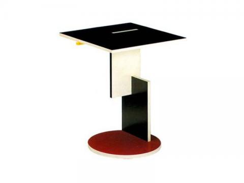 Questo oggetto fu creato da Gerrit Thomas Rietvled nell’occasione del progetto e della costruzione di casa Schodrer, di cui il designer e architetto olandese curò non solo la parte delle progettazione, ma anche la realizzazione del mobilio, grazie alla sua esperienza come falegname: e il tavolino di rietveld è proprio uno dei mobili realizzati per questo progetto.