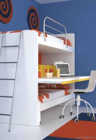 I letti a soppalco, a castello, a ponte, scorrevoli, le pedane rialzate che lasciano ampio spazio al di sotto, librerie e guardaroba sopra il letto, le scrivanie estraibili, una cabina armadio ad angolo, permettono di trovare la soluzione più adatta anche in una stanza dalla metratura contenuta.