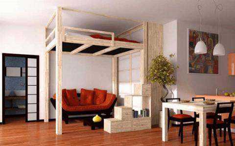 Scegliendo questo tipo di soluzione potremmo recuperare spazio: ovviamente in quantità maggiore con il soppalco (su cui potremmo anche sistemare un guardaroba) ma anche con il semplice letto soppalcato. Infatti potremmo sfruttare lo spazio sotto il letto per inserire un mobile (per esempio una scrivania, se abbiamo la necessità di un angolo dove lavorare, oppure il mobile che contenga la televisione). Inoltre separare la zona giorno dalla zona notte è una soluzione migliore anche ai fini della privacy.